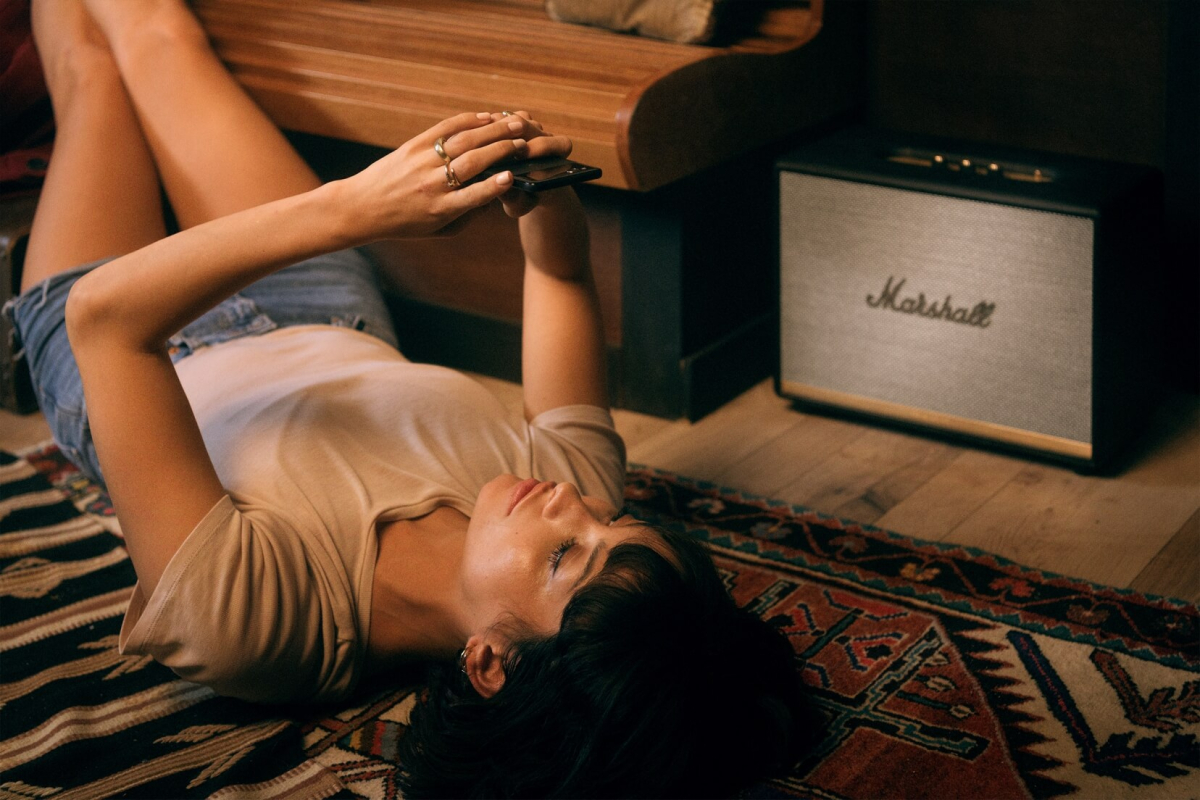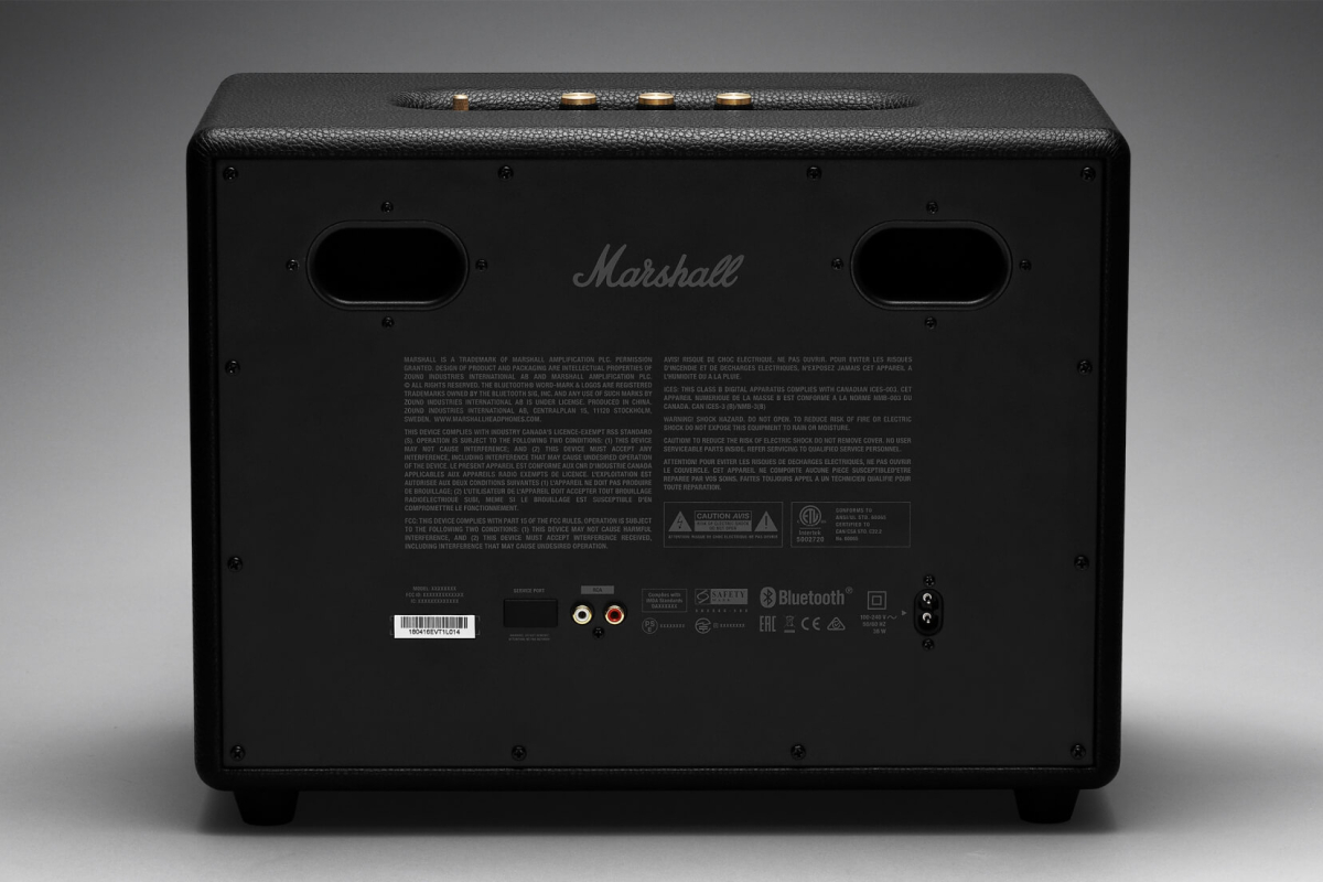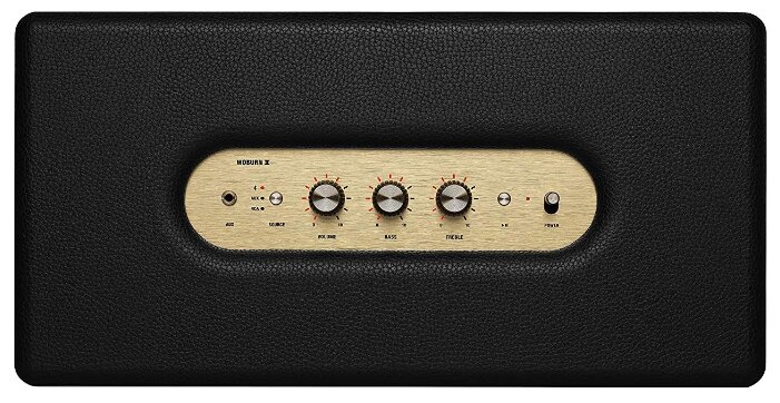Превосходный исполнитель. Самая большая колонка Marshall. Woburn II — самая большая колонка Marshall. Она отличается энергичным звучанием, чисто воспроизводит высокие частоты, легко справляется с басами и правдоподобно передаёт средний диапазон. колонкой Звук объёмный, как сама жизнь Колонка оснащена двумя твиттерами по 1 дюйму и двойным сабвуфером (5,25 дюйма) с раздельными усилителями класса D. Суммарная мощность акустики — внушительные 100 Вт. Знаменитый дизайн Прочный деревянный корпус имеет текстурированное виниловое покрытие, а тканевый гриль украшен всемирно известным логотипом Marshall. На медной табличке выгравированы цифры «1962» — в этом году была основана компания. Настройка звучания Настройте звучание колонки с помощью регуляторов тембра на верхней панели или в приложении Marshall Bluetooth. Приложение Marshall Помимо аналоговых регуляторов, персонализация звучания возможна также с помощью мобильного приложения Marshall Bluetooth. Варианты подключения Наряду с Bluetooth, вы можете использовать классическое аналоговое подключение через вход RCA или разъем 3,5 мм. Шнур продается отдельно. Подключение нескольких Bluetooth-устройств Woburn II поддерживает работу с несколькими Bluetooth-устройствами одновременно с возможностью переключения между ними.