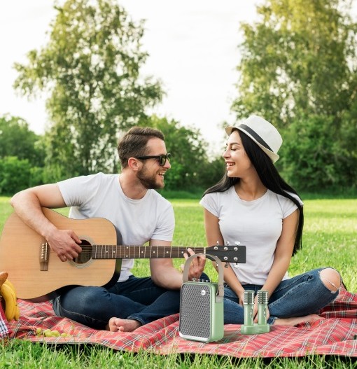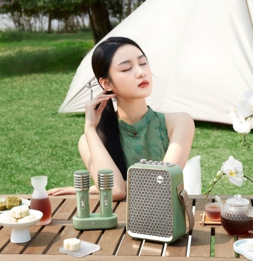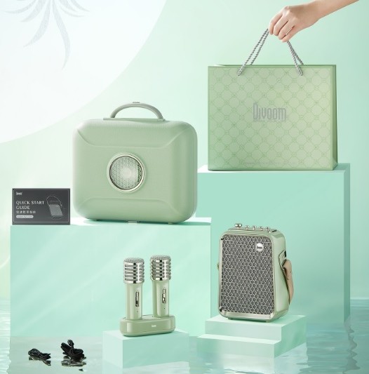 Акустика портативная Divoom SongBird-HQ + микрофон (2шт), зеленый