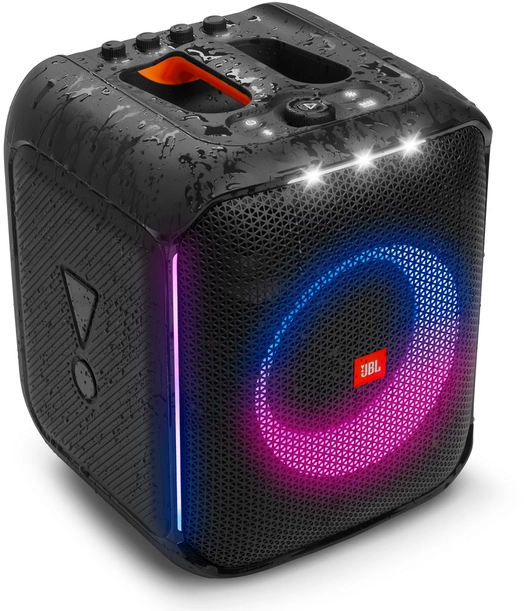 Мощная колонка с микрофоном JBL PartyBox Encore По-настоящему громкая акустическая система, мощность которой достигает 100 Вт. Она переливается в такт музыки всеми цветами и очень долго работает без подзарядки. Комплектуется беспроводным микрофоном Колонка переливается в такт музыки всеми цветами JBL PartyBox Encore непременно привлекает внимание и становится центром притяжения. Всё благодаря системе светодиодов, которые располагаются на фронтальной стороне колонки и переливаются в такт музыки всеми цветами. Так аудиосистема создаёт невероятный звуковизуальный опыт, который просто нужно видеть. С JBL PartyBox Encore вечеринка может затянуться Чтобы вечеринка никогда не заканчивалась, JBL PartyBox Encore можно подключить к непрерывному питанию. Впрочем, по-настоящему продолжительная автономность аудиосистемы даёт возможность не задумываться по этому поводу. От полного заряда она может непрерывно воспроизводить музыку до 10 часов. JBL PartyBox Encore защищена от окружающей влаги Танцы на пляже у моря или озера, настоящее караоке у бассейна, дождь, который неожиданно начался — JBL PartyBox Encore всё это точно окажется по плечу. Аудиосистема защищена от влаги по стандарту IPX4, поэтому можно вообще не беспокоиться по поводу неожиданных брызг, которые могут на неё случайно попасть. В комплект поставки аудиосистемы входит микрофон JBL PartyBox Encore поставляется вместе с цифровым беспроводным микрофоном, специально разработанным для караоке. Он обладает низкой задержкой, а также широким разнообразием регулируемых параметров, которые помогут сделать живое выступление более насыщенным, ярким и привлекательным. Пару таких колонок получится быстро связать вместе Мощность каждого JBL PartyBox Encore достигает 100 Вт. Впрочем, если её недостаточно, к одной такой аудиосистеме получится привязать дополнительную. Для этого используется технология True Wireless Stereo, которая связывает пару колонок вместе, чтобы создать ещё более громкую комбинацию. Контролировать колонку поможет фирменное приложение Самые разные параметры JBL PartyBox Encore можно менять с помощью фирменного мобильного приложения PartyBox. Оно, в том числе, поможет изменить цвета светового шоу или переключить источники воспроизведения. Кроме Bluetooth, аудиосистема также поддерживает подключение по AUX и USB-накопители.