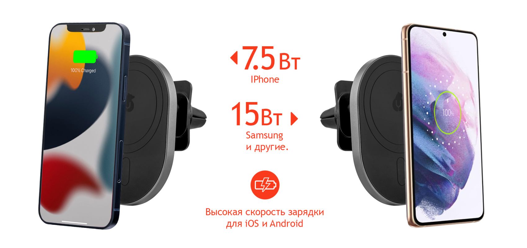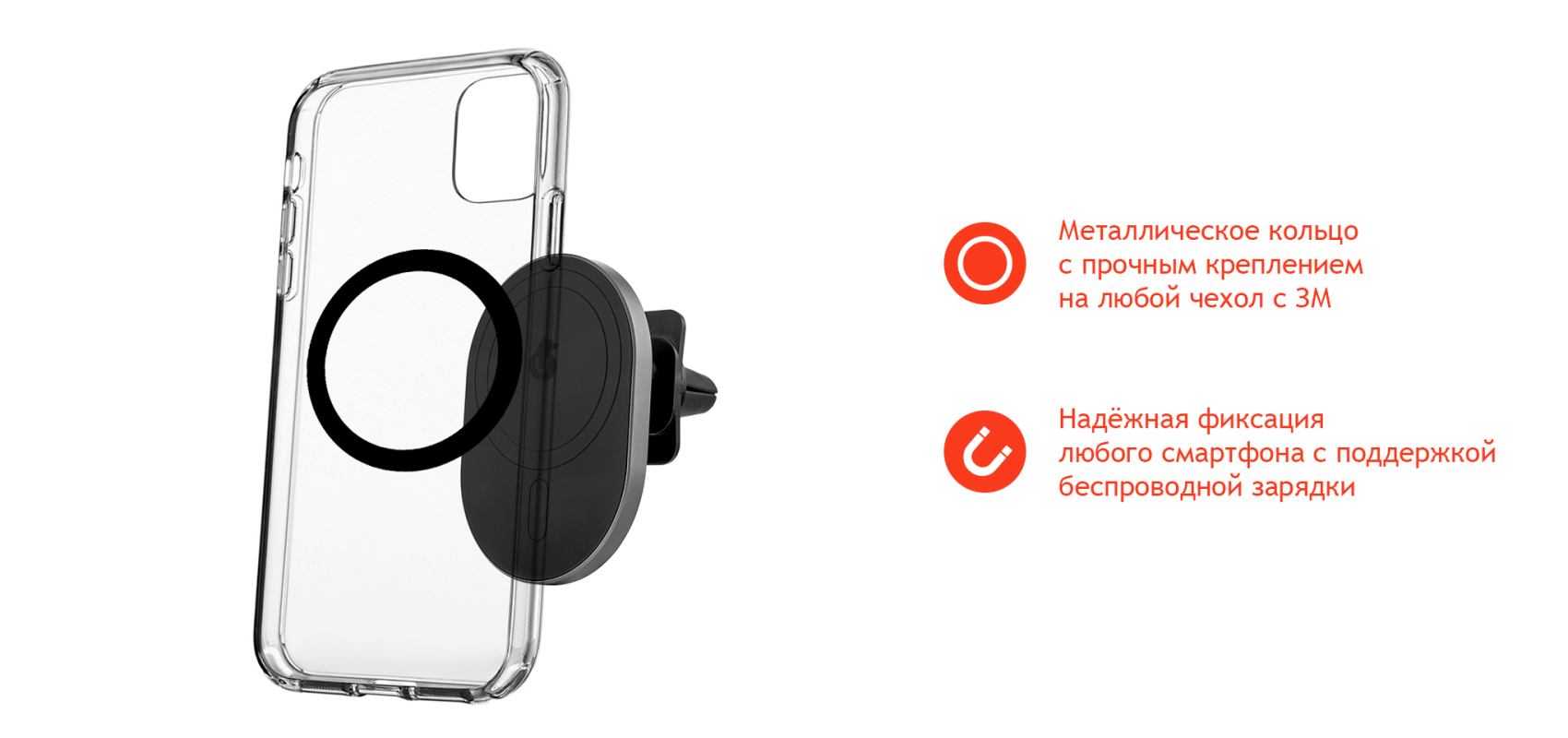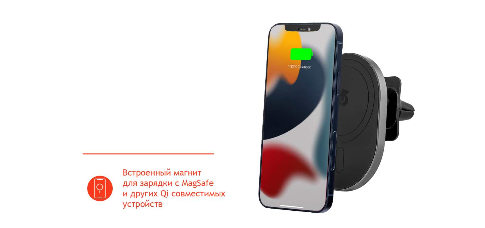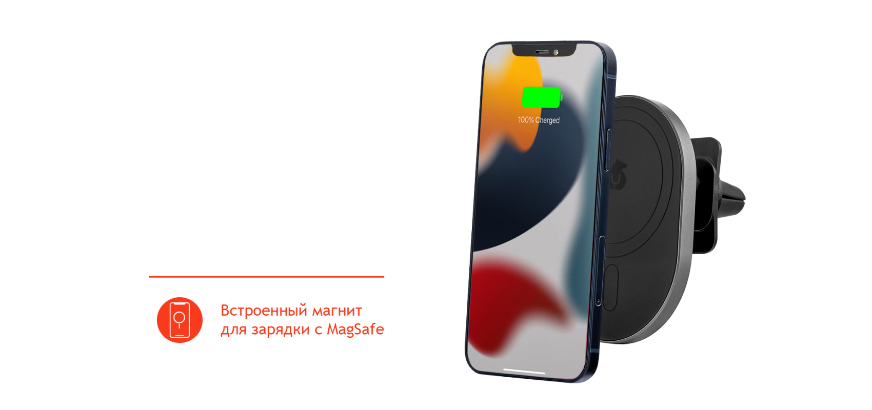 Заряжайте свой смартфон еще удобнее и быстрее, не отвлекаясь от дороги. Мощный магнит в автодержателе Go-Power поддерживает функцию зарядки MagSafe. Держатель подходит ко всем видам дефлекторов, а телефон крепится на магнитной панели как в вертикальной так и горизонтальной ориентации одним движением. Особенности Магнитное кольцо в комплекте. Защита от короткого замыкания, перегрева. Мягкое покрытие с эффектом Soft-touch. Цельный корпус из авиационного алюминия.