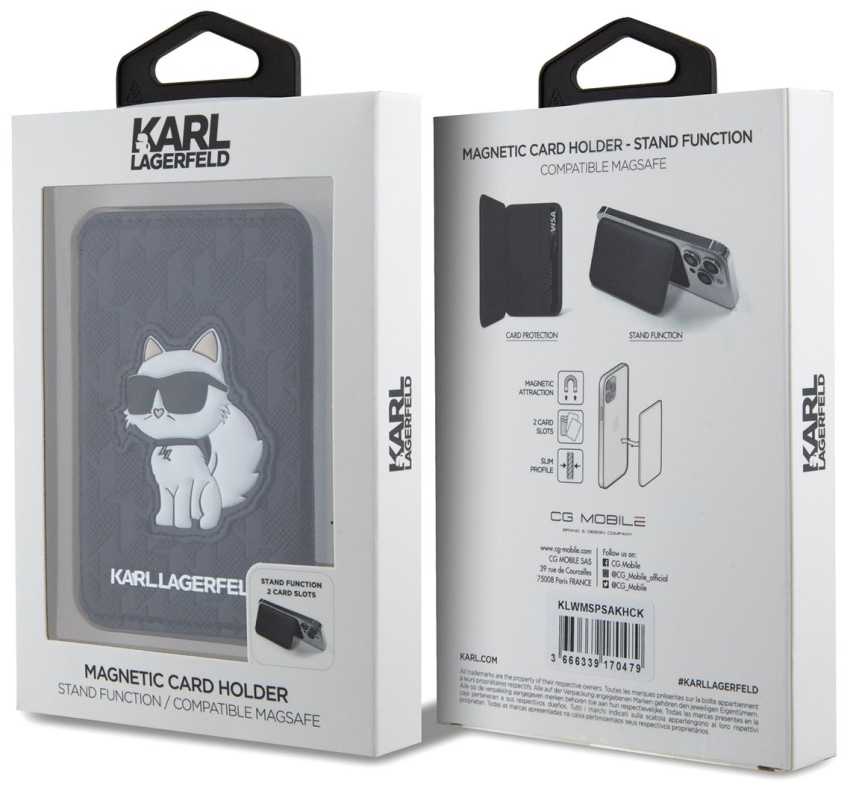 Чехол-бумажник Karl Lagerfeld Saffiano Choupette Cardslot MagSafe, черный