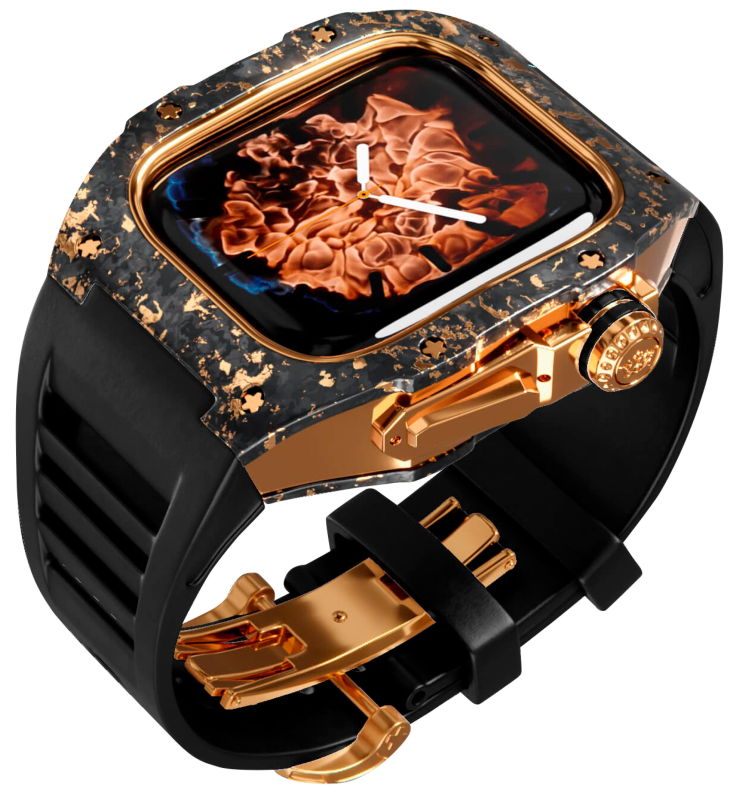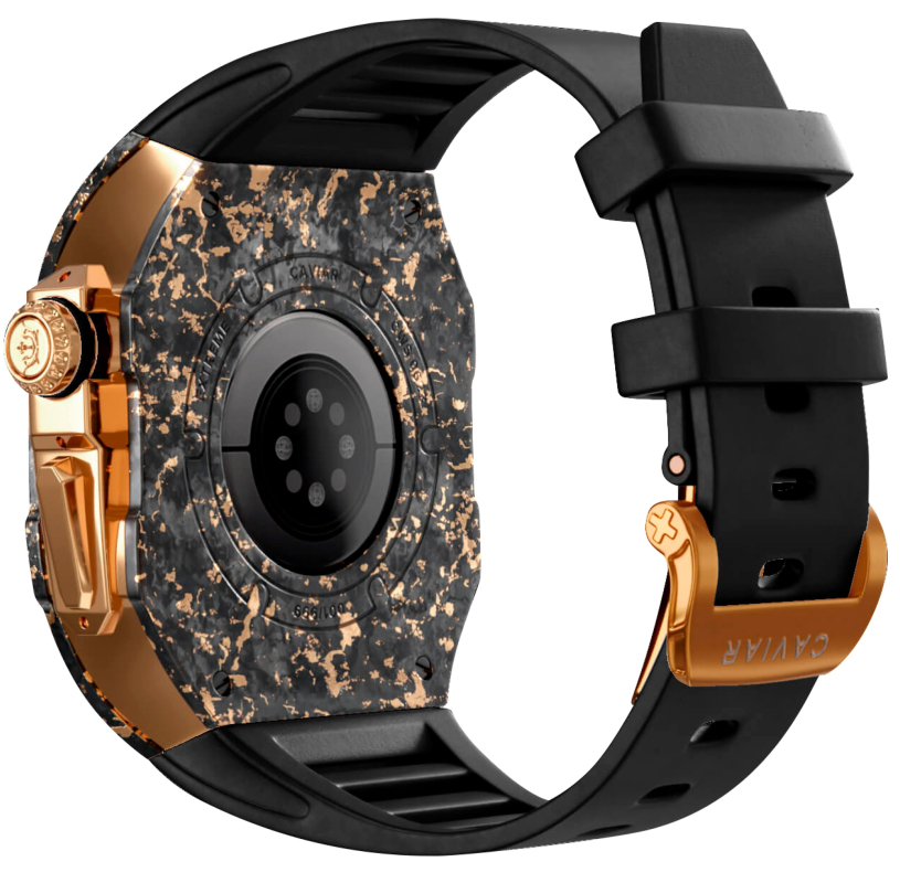 Золото и карбон Чехол Caviar Case Extreme Impulse для Apple Watch 45mm выполнен из карбона с позолоченными вкраплениями и дополнен деталями из авиационного титана с PVD-покрытием, что придает ему не только эстетическую привлекательность, но и обеспечивает высокую прочность Надежная защита вашего устройства Карбоновый чехол Caviar Case Extreme Impulse надежно защищает Apple Watch от повреждений, ударов и царапин. Благодаря прочности материала, часы остаются в безопасности даже в условиях активного использования. Идеальная совместимость с Apple Watch 45mm Чехол разработан специально для модели Apple Watch 45mm, что гарантирует идеальное совпадение по размеру и форме. Все функции часов остаются доступными, не ограничивая удобство использования. Легкость в установке и снятии Caviar Case Extreme Impulse легко устанавливается и снимается, что позволяет быстро изменить внешний вид часов на стандартный при необходимости. Это обеспечивает удобство в использовании и не требует особых усилий или специальных навыков. Устойчивость к износу и долговечность Высококачественный карбон, использованный в производстве чехла, гарантирует его устойчивость к износу и долговечность. Это означает, что чехол сохранит свой первоначальный вид и защитные свойства на протяжении долгого времени. Универсальность в стиле Caviar Case Extreme Impulse подходит как для деловых, так и для повседневных образов, благодаря своему универсальному и элегантному дизайну. Он идеально сочетается как с классическим костюмом, так и с более расслабленным casual-нарядом. Эксклюзивность и престиж Использование чехла Caviar Case Extreme Impulse для Apple Watch не только защищает ваше устройство, но и выделяет вас из толпы, подчеркивая ваше чувство стиля и предпочтение к эксклюзивным аксессуарам высокого класса. Это идеальный выбор для тех, кто ценит качество, дизайн и хочет подчеркнуть свой статус.