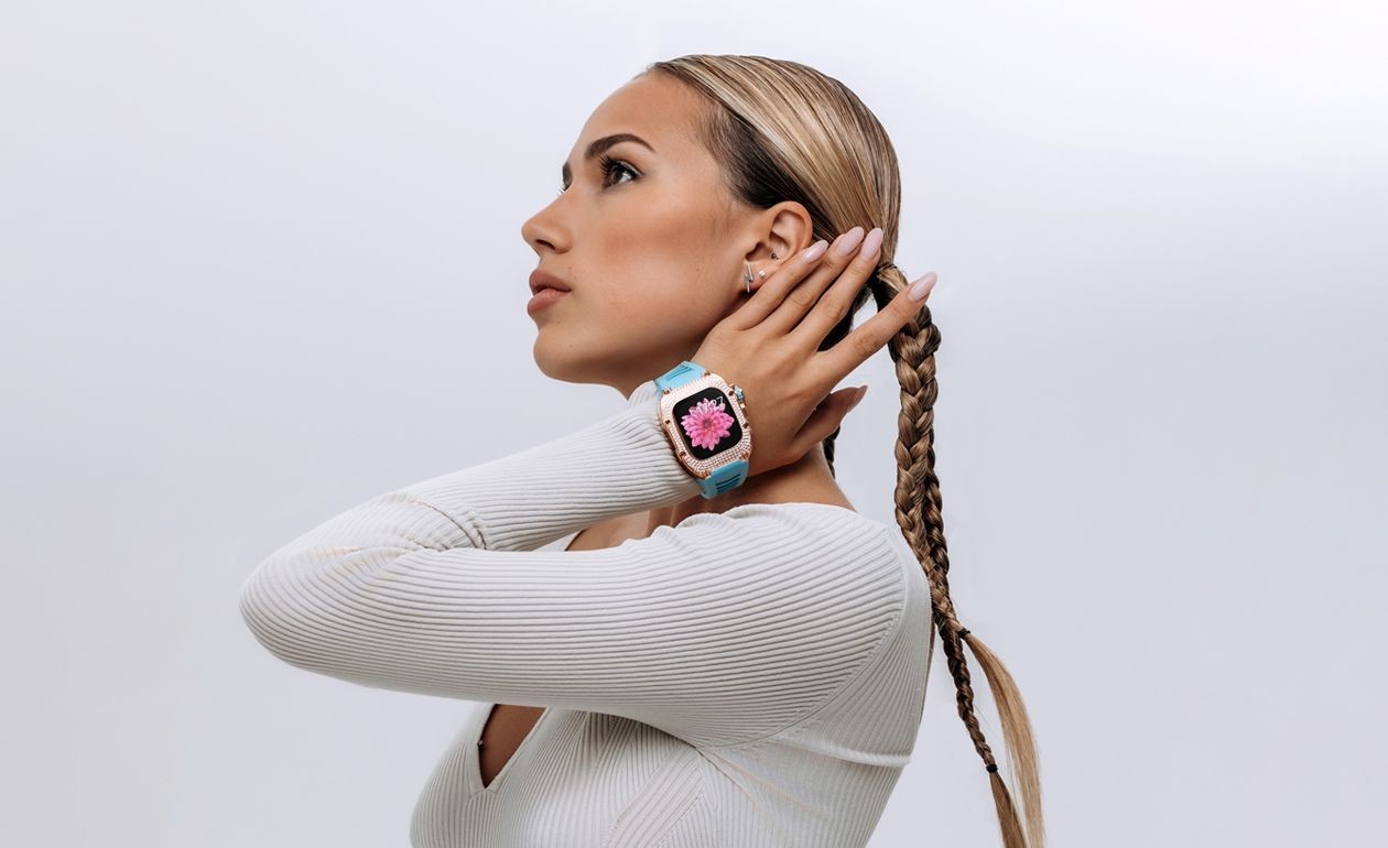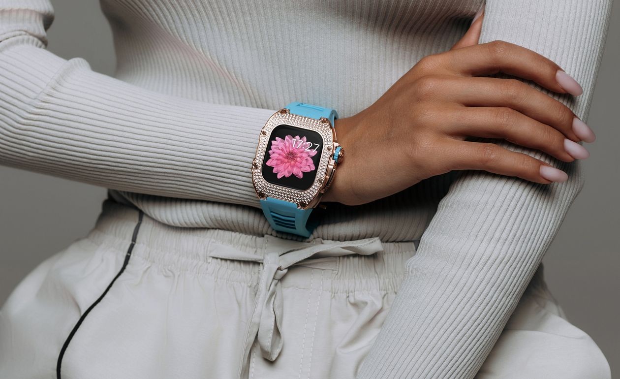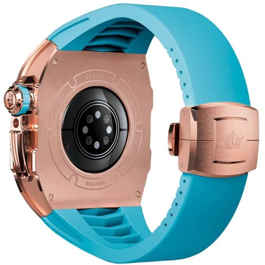Чехол Caviar Case Supreme Sparkle для Apple Watch 41 мм, сталь, синий+розовое золото