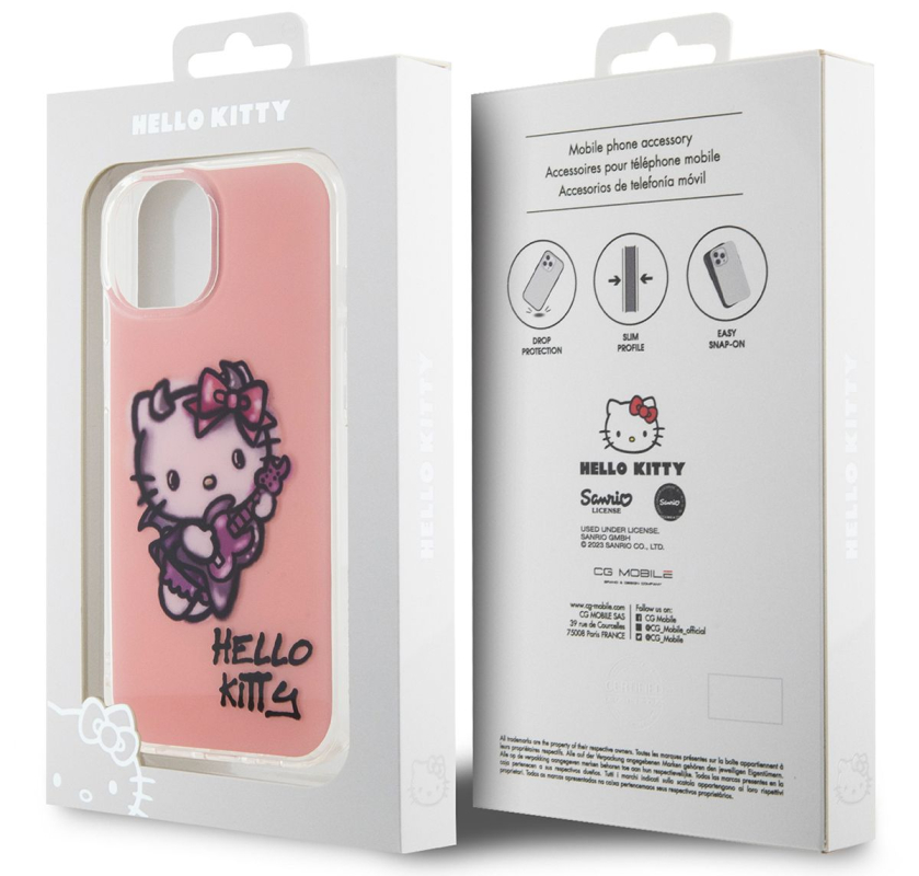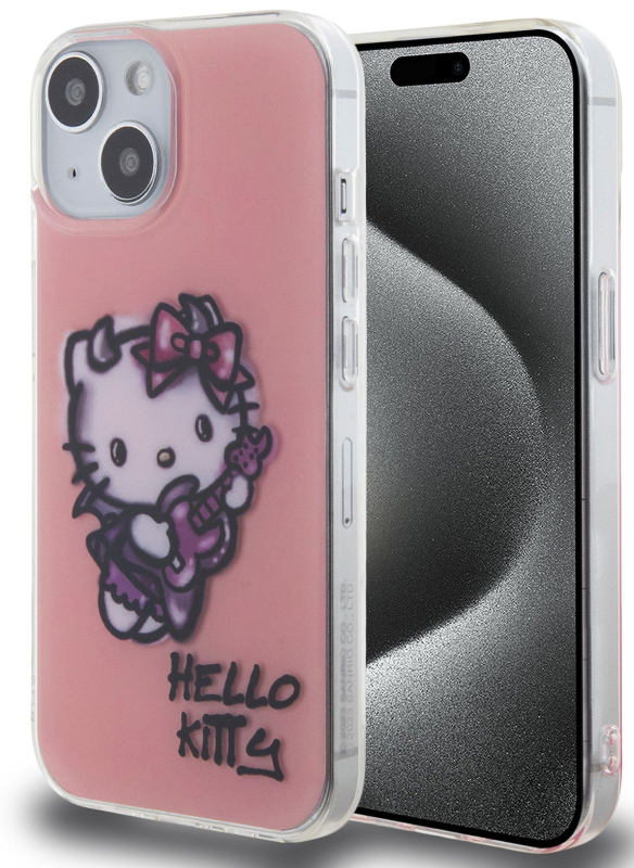 Чехол Hello Kitty Graffiti Guitar для iPhone 15, розовый
