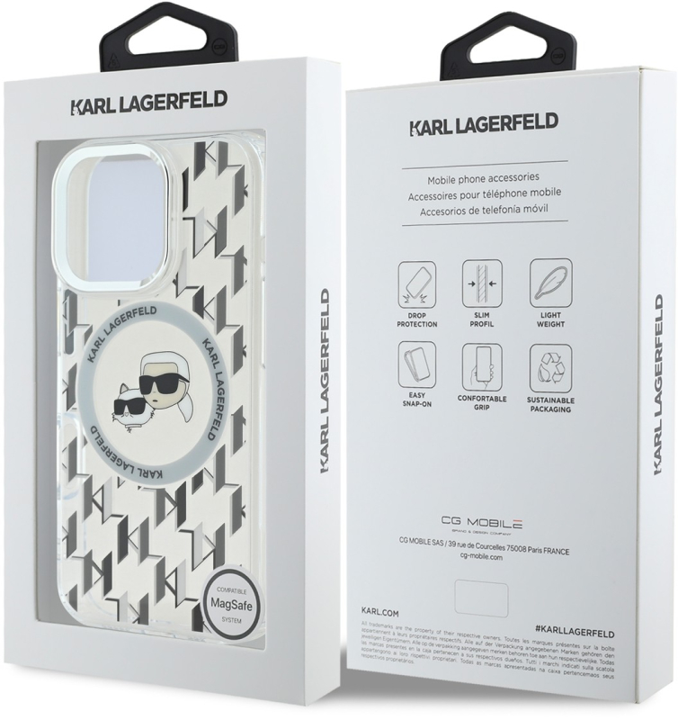 Чехол Karl Lagerfeld Monogram NFT & Choupette MagSafe для iPhone 16 Pro Max, прозрачный