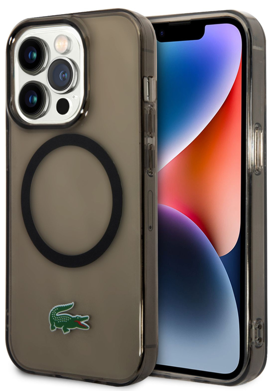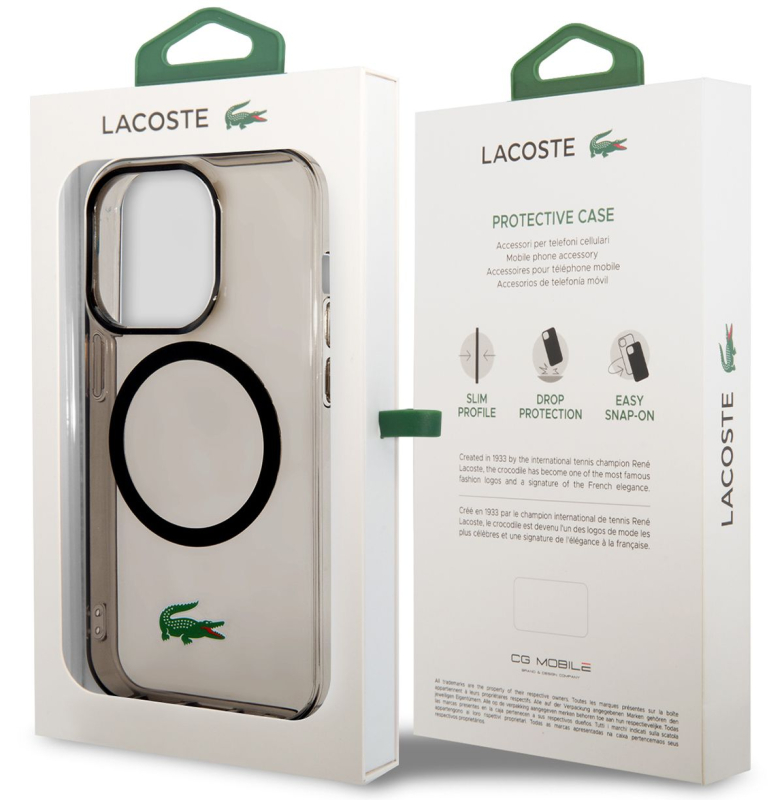 Чехол Lacoste Hard Logo для iPhone 15 Pro Max MagSafe, прозрачный/черный