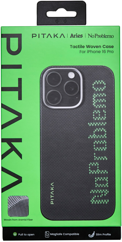 Чехол Pitaka Aries Tactile Woven Case NoProblemo MagSafe для iPhone 16 Pro, кевлар, черный
