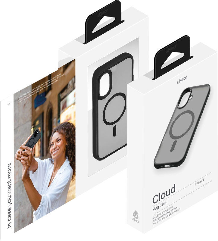 Чехол uBear Cloud Case MagSafe для iPhone 16, silk-touch, черный
