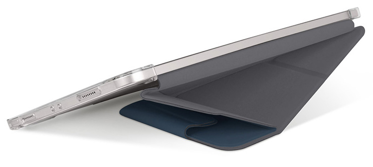 Защитный чехол для iPad с прозрачной задней частью и флипом, который можно использовать в виде многопозиционной подставки. Пластик задней части содержит силикон, мягкий и устойчивый к падениям. Стилус хранится и заряжается одновременно в специальном отсеке. Флип (обложка чехла из искусственной кожи) подобраны в цвет планшета. Внутренняя поверхность обложки обработана ионами серебра для пожизненной дезинфекции экрана (убивает 99,9% бактерий).