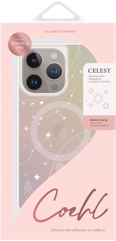 Чехол-накладка Uniq COEHL Savon Magsafe изготовлен из пластикового корпуса и силиконового бампера. Поверхность чехла покрыта светоотражающей голографией с радужными переливами. Аксессуар устойчив к ударам и способен выдержать падение с высоты до 2,5 метров. Боковые грани бампера слегка выступают над экраном, что препятствует появлению на нём царапин, возникающих при соприкосновении с твёрдыми поверхностями. Клавиши смартфона защищены металлическими заглушками, интегрированными в чехол, это предотвращает попадание грязи, пыли и воды. Высокий бортик вокруг камеры оберегает объектив от механических дефектов. В комплекте идут уголки-крепления, на которые можно закрепить шнурок на шею. Поддерживает беспроводную зарядку MagSafe.