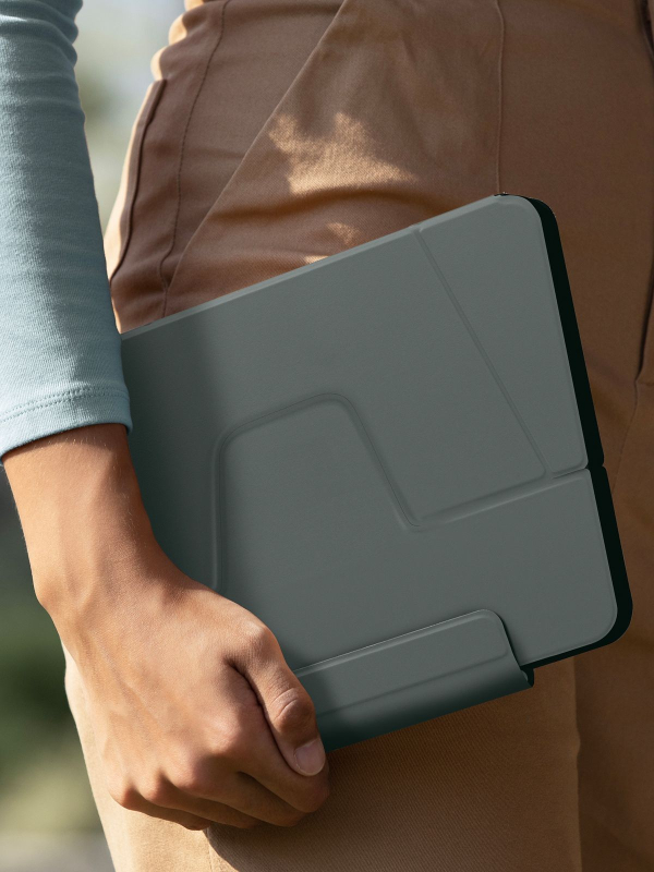 Tонкий чехол для планшета из экокожи, с продуманной складной конструкцией для просмотра на 3 различных уровнях высоты. Встроенный магнитный диск позволяет менять ориентацию планшета для печати или просмотра видео. Анти-скользящая внутренняя подкладка для надежной фиксации iPad под разными углами и встроенный держатель для хранения и зарядки стилуса. Магнитный замок обеспечивает безопасность и защиту от случайного открытия чехла.