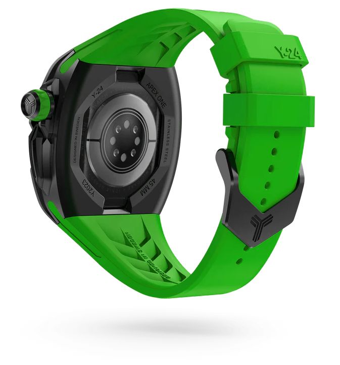 Чехол Y24 для Apple Watch 45mm, сталь/cиликон, черный/зеленый
