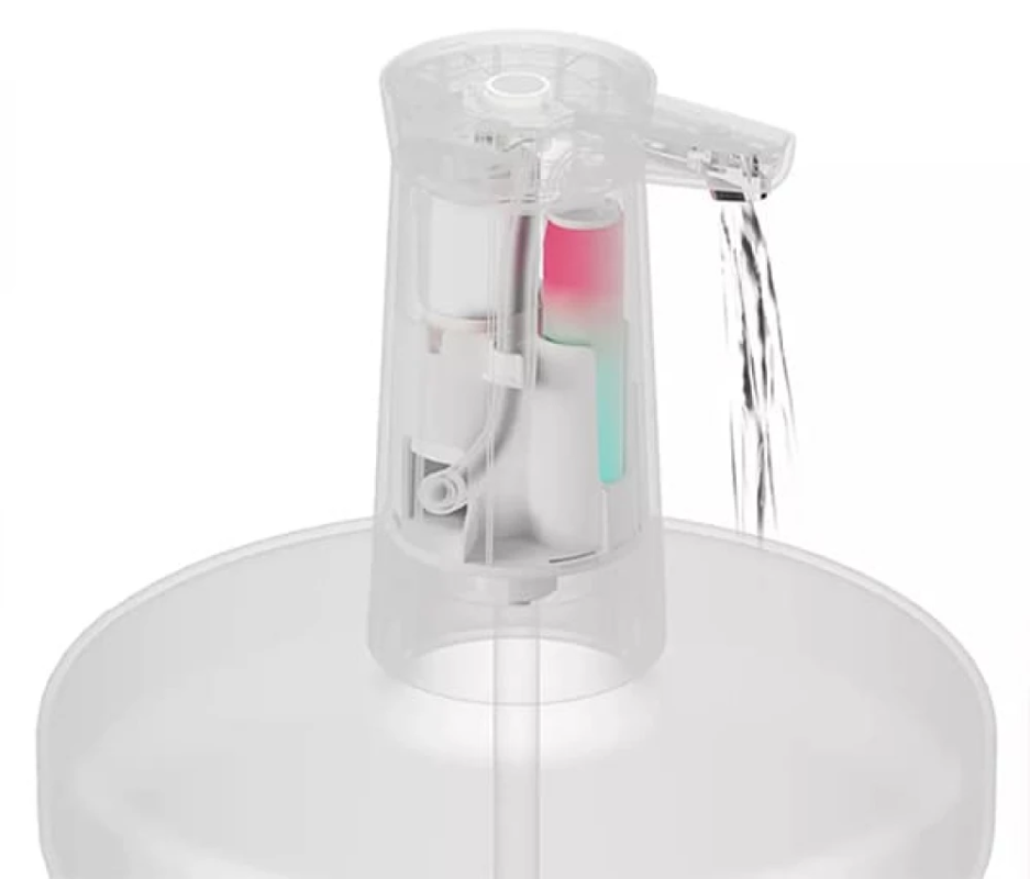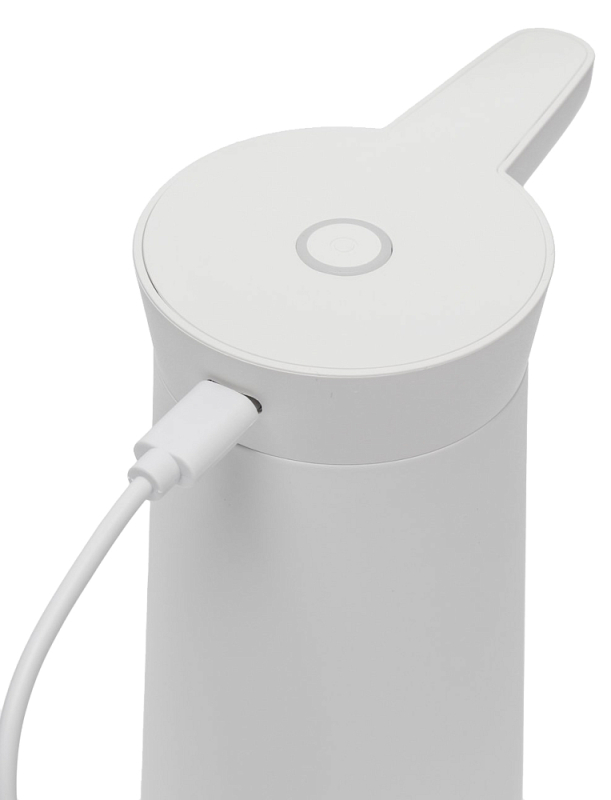 Управление Управление диспенсером осуществляется всего одной кнопкой, расположенной на корпусе. Одно нажатие – пуск потока воды, второе нажатие – остановка. Производительность Производительность диспансера составляет около 1,4 литра воды в минуту – то есть, за одну минуту можно наполнить водой до максимума электрический чайник. Автономность Полного заряда аккумулятора емкостью в 2000 мАч хватит до 90 дней автономной работы, либо на перекачку 120 литров воды без подзарядки. Полная зарядка диспансера осуществляется за 4 часа. Индикация В случае, если заряд аккумулятора идет к нулю, индикация, расположенная вокруг кнопки управления, загорится красным цветом. Компактность и портативность Встроенный аккумулятор позволяет не ограничивать использование диспенсера местами, где поблизости есть сетевая розетка. А компактные размеры позволяют его легко устанавливать и переносить. Совместимость Диспенсер совместим практически с любыми видами бутылей объемом от 3 до 18,9 литров.