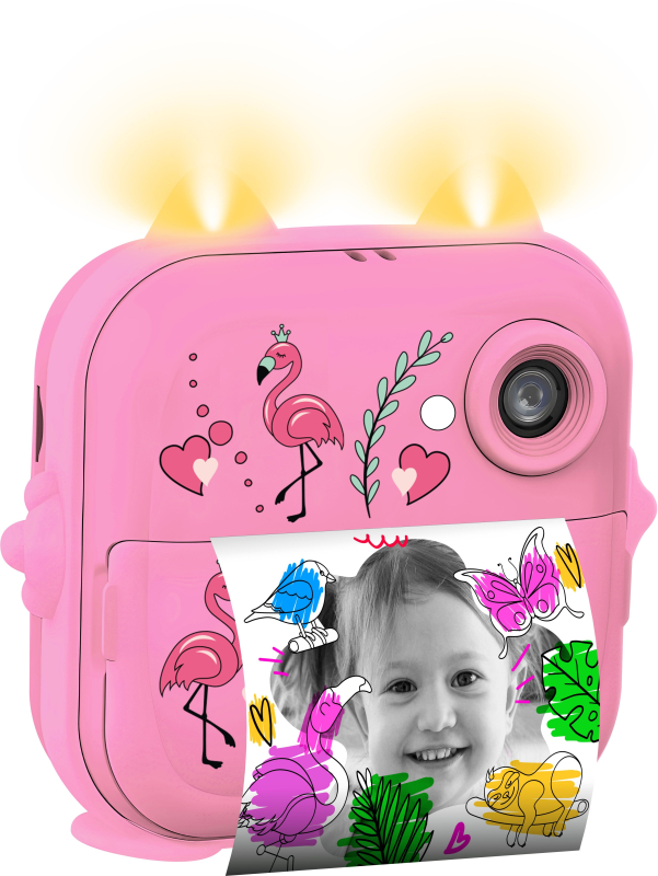 Моментальная печать – термопечать без чернил. Печать со смартфона – печать фотографий с Вашего смартфона по Bluetooth. Оригинальные рамки и стикеры – для придания фотографиям индивидуальности. MP3 плеер – для прослушивания любимых треков. Увлекательные игры – для развития памяти, мышления и логики детей. Тип экрана: IPS 2,4 дюйма, 240 x 320. Размер фото: 75 x 50 мм. Разрешение видео: 1920 x 1080. Общее количество пикселей: 48 Мпикс. Емкость аккумулятора: 1200мАч. Время работы от аккумулятора: До 3 часов. Тип карты: MicroSD. Размер камеры: 89,6 x 86,6 x 44 мм. Размер рулона бумаги: 57 x 25 мм. Цвет печати: Черно-белая.