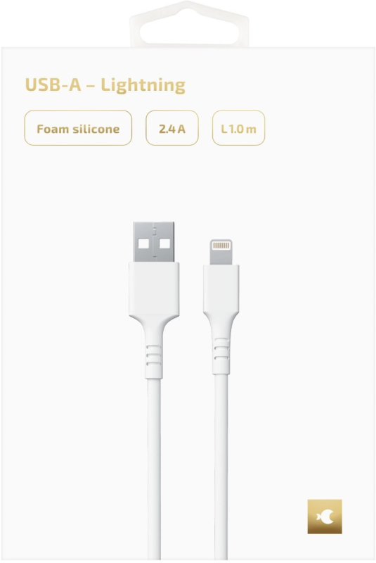 Кабель moonfish USB-A – Lightning, 1м, 2.4A, вспененный силикон, белый