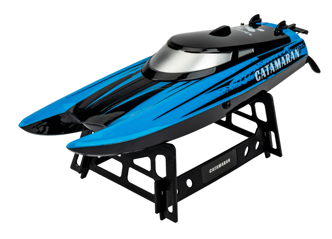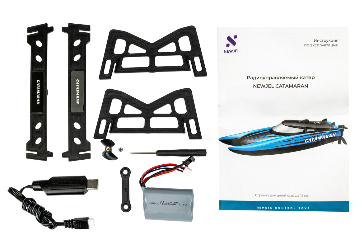 NEWJEL CATAMARAN – это гоночный радиоуправляемый катер cине-черного цвета, быстрый, маневренный и функциональный в своем классе. Подойдет как для подарка, так и для прекрасного времяпрепровождения на открытом воздухе у водоема. Его скорость доставит управляющему настоящее удовольствие, ведь CATAMARAN способен развивать скорость до 20 км/ч. Силовой агрегат имеет продуманную систему водяного охлаждения, которая защищает от перегрева и износа, а водонепроницаемая конструкция корпуса предотвращает попадание воды на электронные компоненты. Если катер во время движения перевенется, то вернуть катер в исходное положение поможет кнопка “Переворот”, эта функция позволит избежать неприятностей во время заплыва и получить больше удовольствия от гонки. Электроника радиоуправляемого катера тоже обладает огромным потенциалом: есть задний ход, демо режим, кнопка переключения скорости, управление триммерами – регулировка движения катера, если во время движения катер уводит в сторону. Можно быстро или медленно поворачивать вправо и влево (радиус поворота одинаковый), совершать головокружительные маневры. Пульт управления имеет защиту от помех и широкий радиус действия до 80 метров. Катер CATAMARAN имеет сигнализацию о низком зарядке АКБ и дальности действия пульта управления. Корпус из ударопрочного ABS пластика обеспечивает отличную прочность, жесткость и стойкость к трещинам, предохранят катер от повреждений при скоростной езде в течение долгого времени. Независимо от вашего уровня навыков в CATAMARAN есть все, что нужно как экспертам, так и новичкам. Особенности: • Скоростной катер • Водяное охлаждение мотора • Две крышки, защита от воды • Скорость до 20 км/ч • Сигнализация о разряде АКБ и дальности действия пульта ДУ • Кнопка переворота • Регулировка триммеров по скорости и управлению • Демо режим • Пропорциоанльный пульт управления • Большой размер катера • НЕ ЗАПУСКАТЬ В СОЛЁНОЙ ВОДЕ!