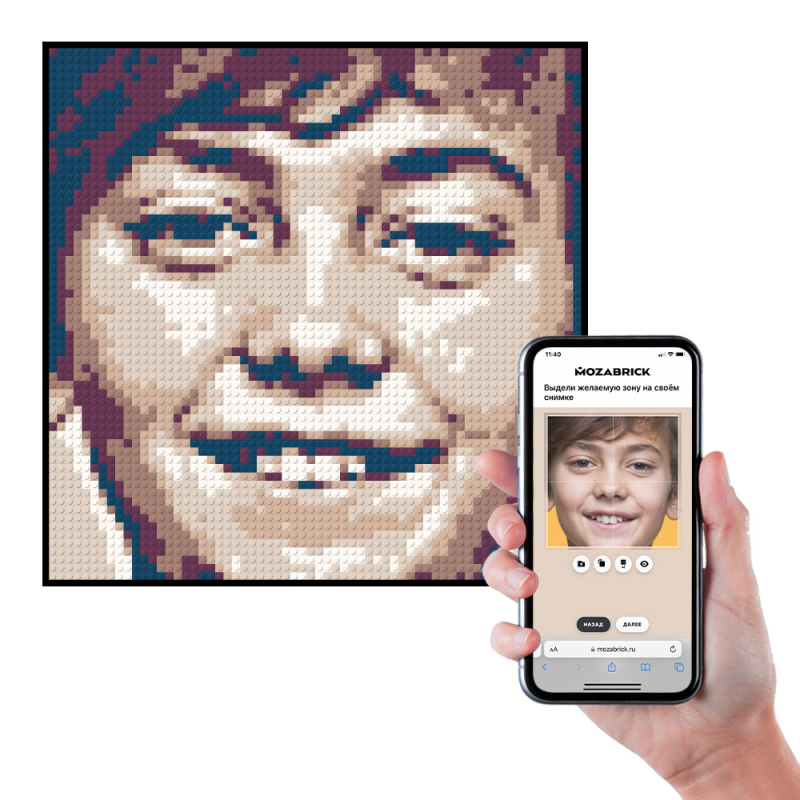 Фото-конструктор Mozabrick Color Универсальный конструктор, позволяющий превратить любую фотографию в крутую pixel-art картину! Шаг первый Купи набор фото-конструктора Mozabrick. Шаг второй Выбери любимое фото, загрузи на наш официальный сайт и получи подробную инструкцию. Шаг третий Собирай картину по простой и удобной инструкции онлайн или распечатай файл, который моментально придёт тебе на почту. Бесконечный конструктор Можно пересобирать бесконечное количество раз с новыми фотографиями. Рамка в комплекте В набор входит стильная чёрная рамка — завершающий штрих твоей картины Дари, как тебе нравится! Отличный подарок как в коробке, так и в собранном виде.