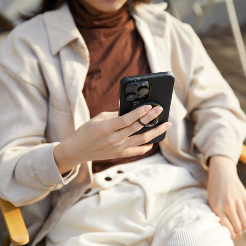 Самое тонкое и легкое магнитное кольцо для смартфона из арамидного волокна, совместимое с MagSafe. Тонкая (4,3 мм) и легкая (27 г) Совместимость с MagSafe и MagEZ 2.0 Прочное арамидное волокно и цинковый сплав Используется в качестве подставки и держателя смартфона Легко крепится и извлекается из любого чехла MagSafe