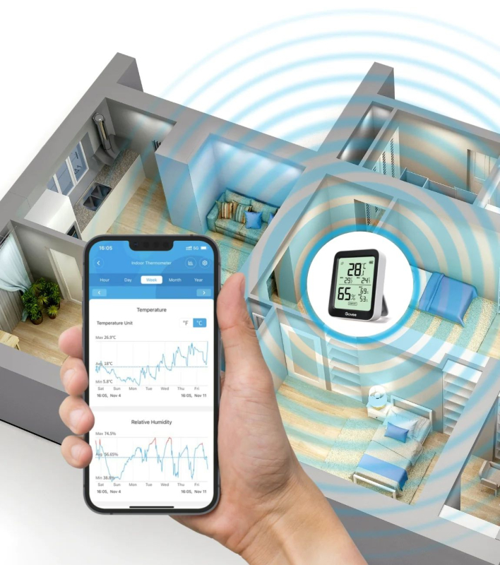 Точное отслеживание погоды Метеостанция Govee H5075 предоставляет точные и своевременные данные о внутренних и внешних условиях окружающей среды. Она измеряет температуру и влажность, что делает её идеальным инструментом для поддержания комфортного климата в доме или офисе Беспроводная связь и удаленный мониторинг Эта метеостанция оснащена беспроводной технологией, позволяющей передавать данные на расстояние до 60 метров. Пользователи могут мониторить погодные условия в режиме реального времени через приложение Govee Home на своем смартфоне, что упрощает доступ к информации в любом месте. Интеграция с умным домом Govee H5075 совместима с многими умными домашними системами, позволяя интегрировать данные о погоде в автоматизированные сценарии дома. Это может включать регулировку термостатов или умных окон в зависимости от изменения температуры или влажности. Интуитивно понятный дисплей На большом ЖК-дисплее отображается всё необходимое: от текущей температуры и влажности до тенденций изменений и исторических данных. Это делает метеостанцию легко читаемой и удобной для пользователей всех возрастов. Адаптивные предупреждения Метеостанция Govee H5075 предлагает персонализированные предупреждения о критических изменениях погодных условий, таких как резкое понижение температуры или повышенная влажность, что может помочь предотвратить возможные проблемы, связанные с погодными условиями. Энергоэффективность и долговечность Метеостанция работает от батарей, что обеспечивает непрерывное мониторинг погоды даже в случае отключения электроэнергии. Низкое энергопотребление гарантирует длительную работу устройства без необходимости частой замены батарей. Универсальное применение Метеостанция Govee H5075 идеально подходит не только для дома, но и для использования в школах, больницах и на предприятиях, где важно поддерживать оптимальный климат. Её можно использовать для мониторинга теплиц, винных погребов и многих других мест, где критичны точные погодные данные.