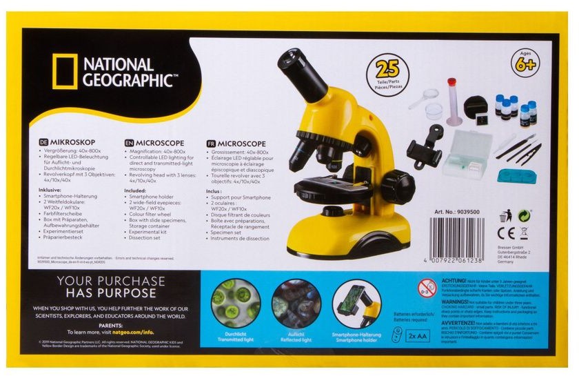 Микроскоп Bresser National Geographic 40x-800x., желто-черный