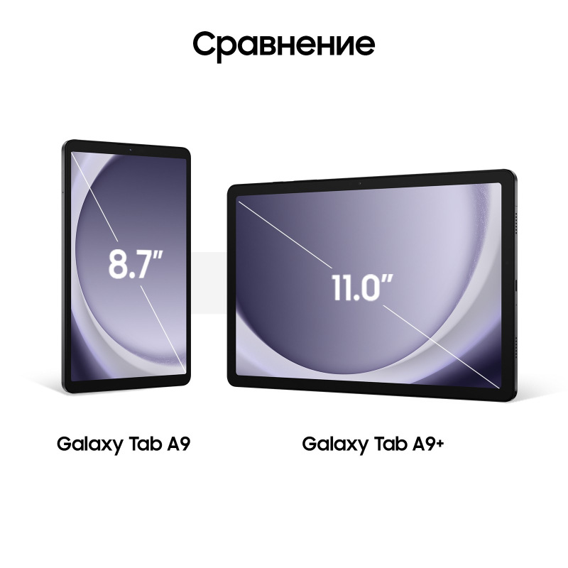 Классика минимализма Элегантный металлический корпус Samsung Galaxy Tab A9+ выглядит стильно и лаконично. Гладкая поверхность, аккуратный вырез камеры, безупречная геометрия, — всё это выгодно отличает Samsung Galaxy Tab A9+ от других планшетов из той же категории. Модель представлена в трёх цветах — синем, серебряном и графитовом. Большой и яркий экран Большой 11-дюймовый экран Samsung Galaxy Tab A9+ обладает хорошим запасом яркости, реалистичной цветопередачей и поддержкой частоты 90 герц. Он отлично подходит как для работы, так и для развлечений, а пользоваться им будет комфортно даже в солнечный день. Подойдёт для любых задач Мощный восьмиядерный процессор Snapdragon 695 обеспечивает планшету отличную производительность, а 8 гигабайт оперативной памяти позволяют сполна насладиться многозадачностью. Играйте, работайте с документами или монтируйте видео для социальных сетей, — возможностей Samsung Galaxy Tab A9+ хватит на всё. Сохранит всё, что вы любите Объём хранилища 128 гигабайт позволит устанавливать любые приложения, а также хранить фото или видео в высоком разрешении. Память всегда можно увеличить благодаря поддержке карт microSD до 1 терабайта. Одно окно — хорошо, а три — лучше Насладитесь функциями мультизадачности, доступными для устройств Samsung Galaxy. На экране Samsung Galaxy Tab A9+ можно одновременно запустить сразу три приложения, работая с каждым из них в отдельном окне. Глубокий и насыщенный звук с поддержкой Dolby Atmos Оцените глубокий звуковой ландшафт благодаря динамикам с поддержкой пространственного звучания. Технология Dolby Atmos позволяет полностью раскрыть возможности встроенной акустики, что делает Samsung Galaxy Tab A9+ идеальным мультимедийным центром, который можно повсюду брать с собой.