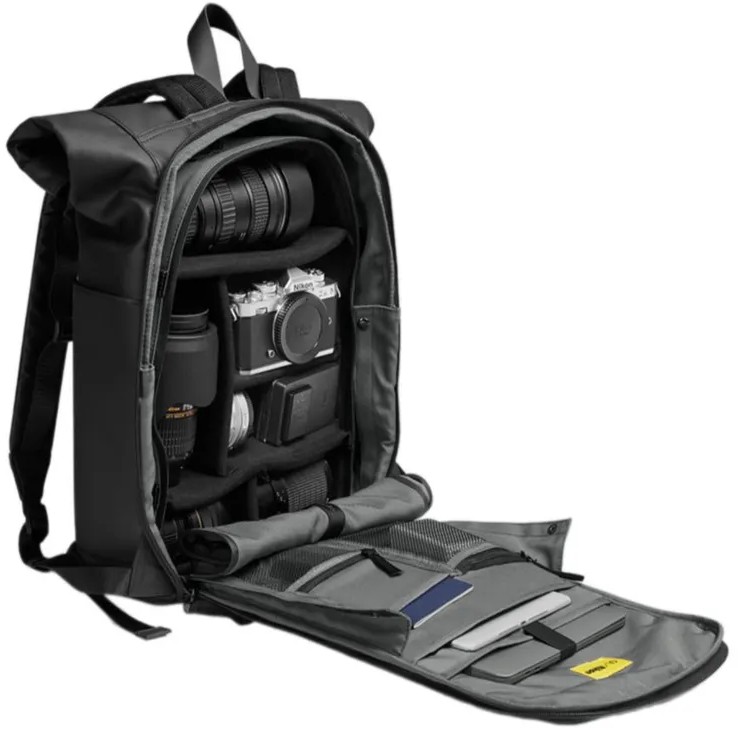 Экологичный переработанный полиэстер с покрытием из ТПУ. Водонепроницаемый материал с водонепроницаемостью 16 000 мм. Съемный держатель камеры с регулируемыми разделителями. Перекидной ремень для крепления на ручку чемодана. U-образная молния, позволяющая полностью открыть основное отделение. Вмещает большинство ноутбуков с диагональю 11–14 дюймов. Мягкая и дышащая поддержка спины. Основной материал рюкзака: 100% переработанный полиэстер с покрытием из ТПУ. Подкладка: 100% переработанный полиэстер. Ремень: 100% переработанный нейлон. Съемная сумка для фотокамеры. Материал: 100% переработанный полиэстер. Подкладка: 100% полиэстер.