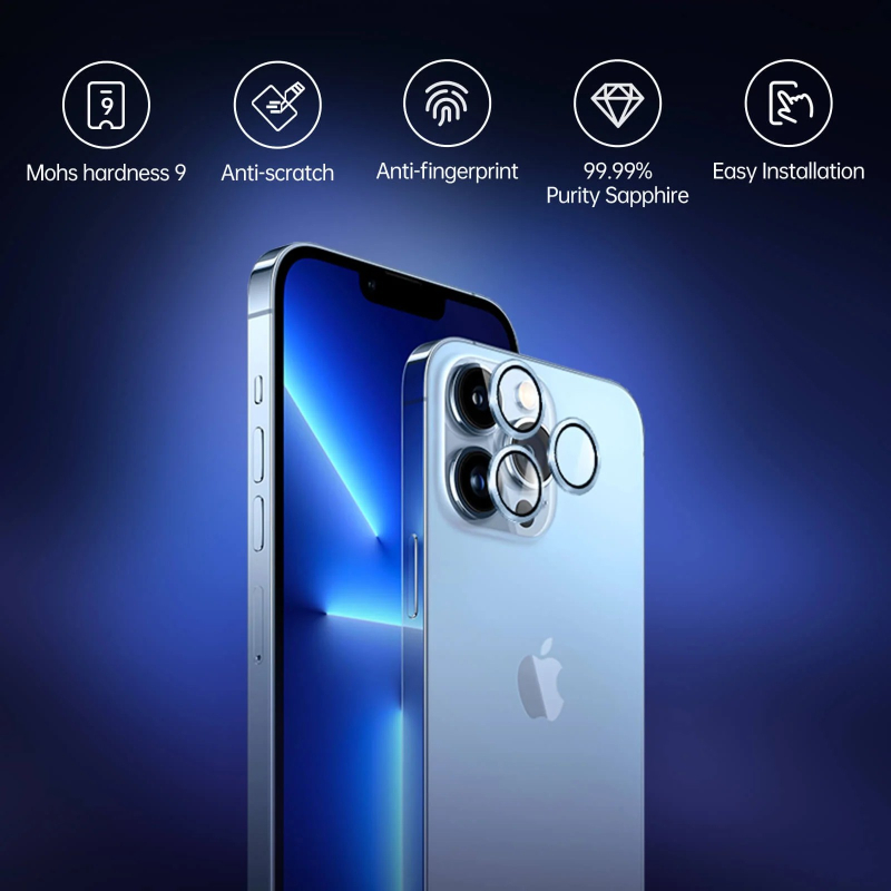 Сапфировая защита для линз идеально подходит для iPhone 15 Pro/15 Pro Max, в комплект поставки входят 3 сапфировые пластины. Вырезана из цельного куска искуственного сапфира чистотой 99,99% и имеет качественное олеофобное покрытие. Твердость по шкале Мооса 9Н, сапфировое покрытие обеспечивает надежную защиту от царапин. Выдерживает царапины от ножей, ключей и других металлов. Легко устанавливаются и идеально прилегают к камерам, оснащены специальным аппликатором, который делает установку защиты простой и быстрой.