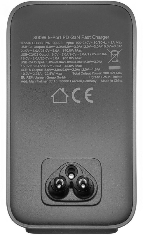 Сетевое зарядное устройство UGREEN CD333 Nexode 4хUSB-C + USB-A, 300 Вт, PD, GaN, серый