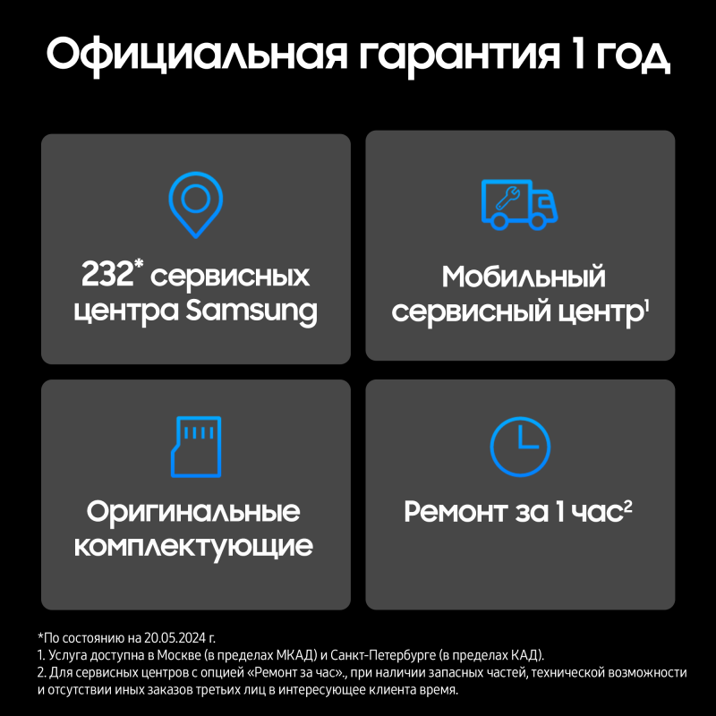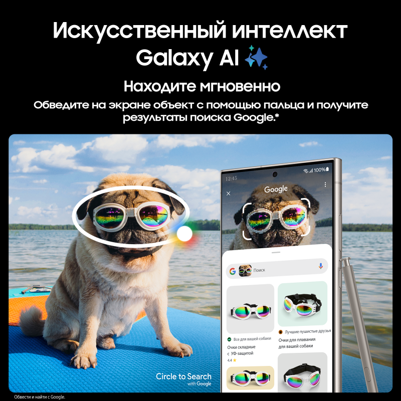Самый быстрый процессор в истории Galaxy Мощнейший процессор Snapdragon 8 Gen3 специально модифицировали для смартфонов Galaxy, сделав его ещё быстрее и эффективнее. Всё это обеспечивает Samsung Galaxy S24 Ultra молниеносную скорость работы и запас производительности на годы вперёд. Искусственный интеллект, который всегда под рукой Искусственный интеллект Galaxy AI станет вашим незаменимым помощником во всех начинаниях. Он распознаёт голос, умеет делать краткий пересказ больших текстов, генерирует изображение по ключевым словам, сам структурирует заметки, предлагает несколько вариантов ответа в переписке и т.д. Забудьте про использование VPN и платных подписок, ведь ваш персональный AI-помощник будет всегда под рукой. Новые горизонты творчества Потрясающая 200-мегапиксельная камера Samsung Galaxy S24 Ultra обеспечивает самые широкие возможности для творчества. Портретный режим с зумом в ночное время, десятикратное оптическое увеличение без потери качества, улучшенная система оптической стабилизации, АI-алгоритмы, распознающие глубину сцены и объекты на фото, — это лишь часть возможностей флагманской камеры. Уникальный AI-редактор Менять свои фотографии станет ещё проще благодаря уникальному AI-редактору. Он моментально сгенерирует новый фон, переместит объект на снимке, даст ценные советы по улучшению цветопередачи, подскажет, где следует поработать с тенями и детализацией. Титан автономности с быстрой зарядкой Аккумулятор ёмкостью 5000 мАч обеспечивает 30 часов видео и до 95 часов прослушивания музыки. Наслаждайтесь играми, кино и общением, не переживая про уровень заряда. Также Samsung Galaxy S24 Ultra поддерживает супербыструю зарядку, причём как проводную, так и беспроводную. Невероятно яркий дисплей с поддержкой S Pen Дисплей Dynamic AMOLED 2X стал на 48% ярче по сравнению с экранами флагманов предыдущего поколения, а технология Vision Booster позволяет моментально адаптировать изображение для работы на солнце. Кроме того, экран Samsung Galaxy S24 Ultra поддерживает S Pen, что открывает ещё больше возможностей для творчества. Knox Matrix Рамка Galaxy S24 Ultra сделана из титана — одного из самых прочных и лёгких металлов. При этом дисплей смартфона защищён уникальным стеклом Gorilla Glass Armor, которое обеспечивает максимально возможную защиту от царапин и любых механических воздействий. Одним росчерком S Pen Электронное перо S Pen стало на Galaxy S24 Ultra стало работать ещё точнее. Рисуйте, пишите от руки, редактируйте изображения и оставляйте заметки на сохранённых скриншотах, — S Pen позволяет делать это намного быстрее комфортнее. Абсолютная защита Galaxy S24 Ultra защищён не только снаружи. Система Knox Matrix обеспечивает высочайший уровень конфиденциальность и защиты личных данных, образуя своего рода «умный щит», который практически невозможно взломать.