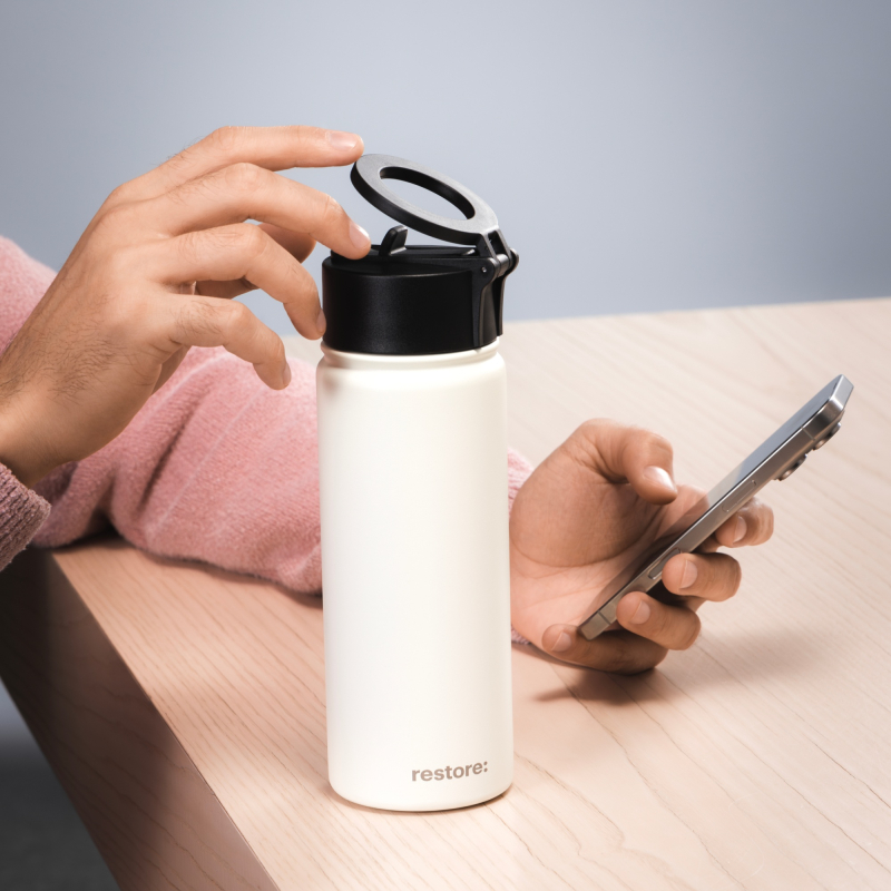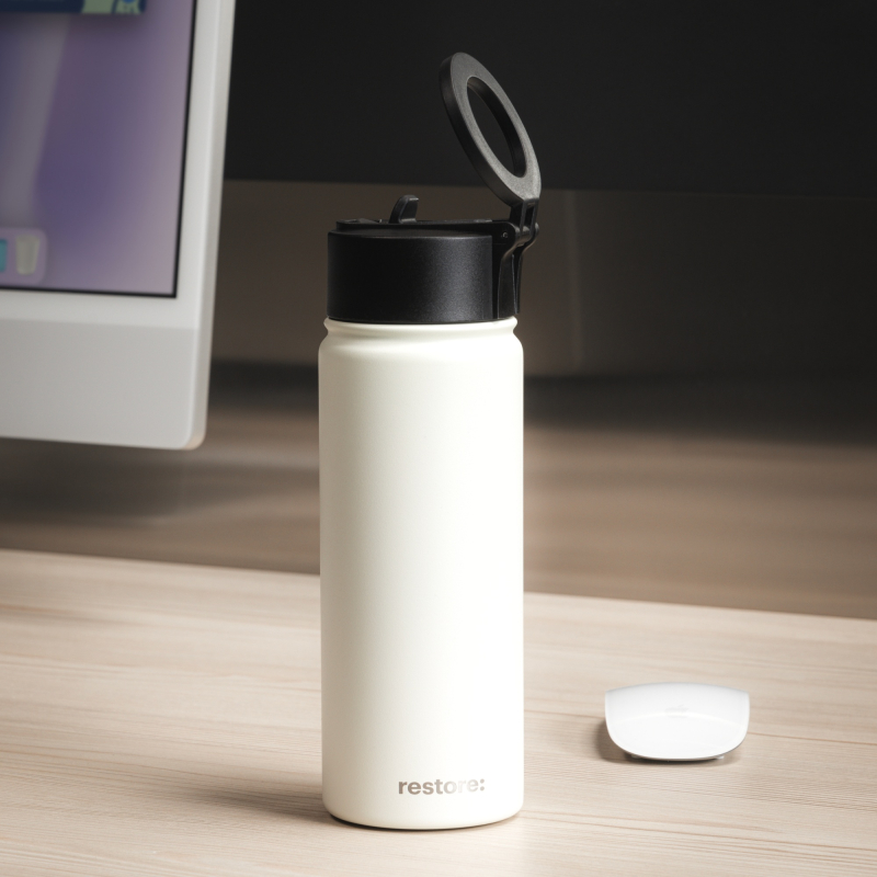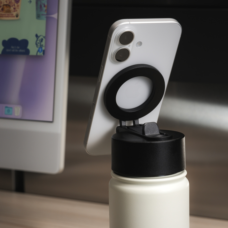 Бутылка для напитков из нержавеющей стали 304 сохраняет температуру до 12 часов, обеспечивая горячие напитки зимой и прохладные летом. Объем 500 мл и легкий вес (308 г) делают её идеальной для повседневного использования. Бутылку можно использовать как подставку для вашего iPhone, благодаря подвижному кольцу MagSafe в крышке.