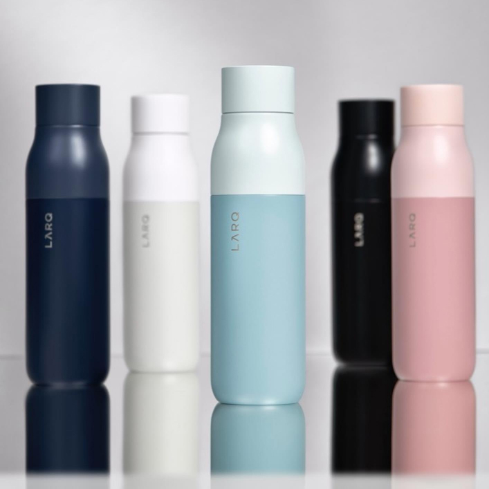 в повседневной жизни, обеспечивая доступ к чистой воде в любое время и в любом месте Встроенная технология самоочистки Одной из ключевых особенностей умной бутылки LARQ является встроенная технология UV-C LED, которая активируется нажатием кнопки и эффективно уничтожает до 99.9% бактерий и вирусов в воде и на внутренней поверхности бутылки. Это обеспечивает безопасное потребление воды и устраняет необходимость регулярного мытья бутылки вручную. Длительное сохранение температуры Благодаря двойным стенкам с вакуумной изоляцией, умная бутылка LARQ способна поддерживать холодные напитки прохладными до 24 часов и горячие напитки теплыми до 12 часов. Это делает бутылку идеальным спутником как для жарких летних дней, так и для холодной зимней погоды. Экологичный и здоровый выбор Использование умной бутылки LARQ способствует снижению потребления пластиковых бутылок, что положительно сказывается на окружающей среде. Кроме того, материал бутылки не содержит BPA и BPS, что делает ее безопасным выбором для вашего здоровья. Интеллектуальные напоминания Умная бутылка LARQ может напоминать о необходимости пить воду в течение дня, что помогает поддерживать оптимальный уровень гидратации организма. Это особенно важно для людей, ведущих активный образ жизни или часто забывающих о регулярном потреблении воды. Удобство и простота использования Бутылка LARQ оснащена удобной крышкой, которая обеспечивает герметичное закрытие и легкость в использовании одной рукой. Эргономичный дизайн и легкий вес делают ее идеальным вариантом для использования во время спортивных занятий, в путешествиях и в повседневной жизни. Долговечность и надежность Умная бутылка LARQ изготовлена из высококачественной нержавеющей стали, что обеспечивает ее прочность и долговечность. Благодаря качественным материалам и надежной конструкции, бутылка способна выдерживать активное использование и станет надежным спутником на многие годы.