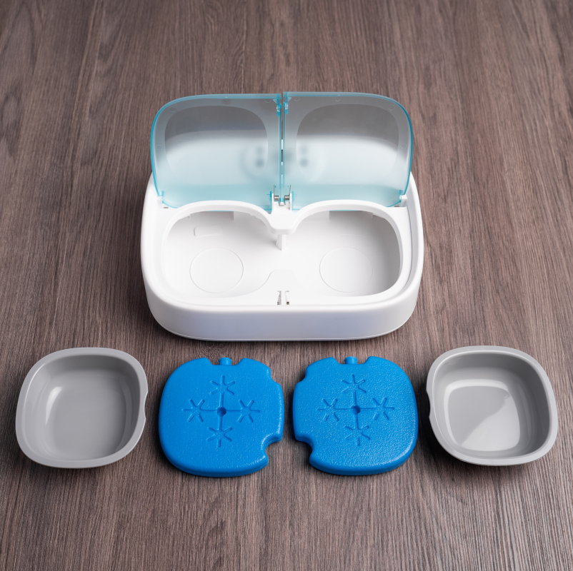 Умная кормушка Petoneer Two-Meal Feeder создана для кошек и собак мелких пород. Подходит для любого вида корма — сухого, влажного, натурального и лакомств. Ключевая особенность кормушки — возможность охлаждать корм и поддерживать его свежесть весь день. Настраивайте график кормления при помощи клавиш и дисплея на корпусе или в приложении Petoneer. Устройство не занимает много места — его габариты 9,2 × 30 × 22 см. Питание от сети не предусмотрено, поэтому кормушку можно установить в любом удобном месте — шнур не будет мешаться. Объем лотков — 355 мл каждый. В сумме этого хватит примерно на 400 г сухого корма. Корпус сделан из прочного пластика. Крышки лотков открываются безопасно для питомцев — даже самый любопытный пушистый нос не пострадает. Работает кормушка очень просто. Откройте лотки, положите в них по порции корма или лакомства. Закройте крышки и установите таймер со смартфона по Bluetooth или с помощью кнопок на корпусе. Запланируйте разное время кормления, чтобы у вашего питомца был доступ к свежей еде весь день. Умная кормушка Petoneer Two-Meal Feeder подходит и для сухого, и для влажного корма. Он сохранит свежесть благодаря охлаждающим блокам. Оставьте их в морозилке на несколько часов, а потом установите под мисками внутри корпуса. Теперь влажный или натуральный корм останется свежим и не заветрится. Лотки можно мыть даже в посудомоечной машине. Их легко достать, чтобы установить охлаждающий блок. Устройство не зависит от розеток — работает от 4 батареек АА, их хватит на срок до 120 дней. А благодаря тому, что нет лишних шнуров, кормушку можно установить в любом удобном месте. Основные особенности: Охлаждение корма для поддержания ее свежести; Плотно закрывающиеся крышки предотвращают окисление и обветривание корма; Возможность использовать любой вид кормов, в том числе влажные; Емкость каждой из двух мисок – 355 мл; Управление через приложение на смартфоне или при помощи кнопок на устройстве; Bluetooth-соединение с приложением Petoneer; Удобные кнопки и LCD-дисплей на корпусе; 2 крышки открываются раздельно, согласно настроенному графику кормления; Питание от 4-х батареек АА (в комплекте); Срок службы батареек – 120 дней; Съемные контейнеры легко моются, в том числе в посудомоечной машине; Подходит для кошек, а так же собак мелких пород.