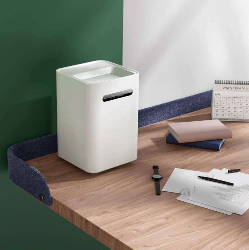 Внешний вид Увлажнитель воздуха Smartmi Evaporative Humidifier 2 подходит как для настольной, так и для напольной установки. Размеры устройства достаточно компактны, благодаря чему ему можно найти место в любом уголке даже небольшого помещения. Корпус прямоугольной формы выполнен из прочного ABS-пластика в классическом белом цвете. Резервуар для жидкости расположен в верхней части. На передней панели имеется сенсорный дисплей. Особенности модели Увлажнитель Smartmi Evaporative Humidifier 2 обладает емким резервуаром на 4 литра и работает со скоростью 260 мл/час. Такого количества воды хватит на 15 часов работы. При минимальном уровне воды увлажнитель продолжает работу в течение 8 часов, автоматически испаряя ее до конца, предотвращая застой и образование бактерий. Антибактериальный состав, которым покрыты внутренние составляющие устройства, очищает и обеззараживает воду, убивая до 99% бактерий. В помещение поступает только безопасный, обеззараженный воздух. Сенсорный дисплей Модель оборудована сенсорным дисплеем, на котором в режиме реального времени можно отследить текущий уровень влажности, остаток воды в резервуаре, установленный режим работы, а также управлять настройками увлажнителя с помощью сенсорных кнопок. Практически бесшумный Уровень шума при работе увлажнителя не превышает 34.7 дБ. Он подойдет для установки в любом помещении, даже в рабочем кабинете или спальне. Управление и интеграция Управление Smartmi Evaporative Humidifier 2 можно осуществлять как вручную с помощью сенсорного дисплея, так и через приложение Mijia APP, установленное на смартфон. Увлажнитель является умным устройством, которое можно интегрировать в систему «Умного дома» от Xiaomi. Технология выпаривания Во время работы увлажнителя воздуха Smartmi Evaporative Humidifier 2 лопасти медленно вращаются, соприкасаясь с водой. На них образуется ультратонкая водяная пленка. Верхний поперечный вентилятор направляет воздух на испаритель, чтобы ускорить процесс и сделать увлажнение более равномерным.